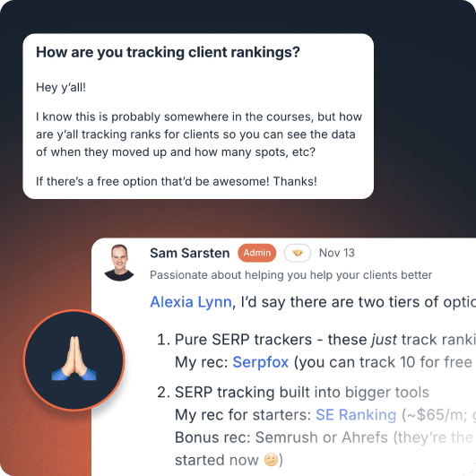 It’s honest, specific, and rooted in actual SEO practice. You can ask questions, share client scenarios, and get real answers - not guesswork. Sam and his team is active, available, and invested in helping you understand how to apply this to your business.